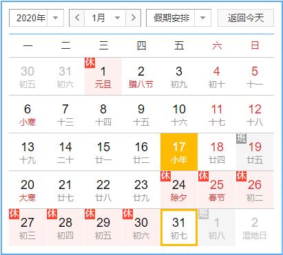 春節(jié)放假時(shí)間:1月18日——1月30日,1月31日恢復(fù)正常上班。