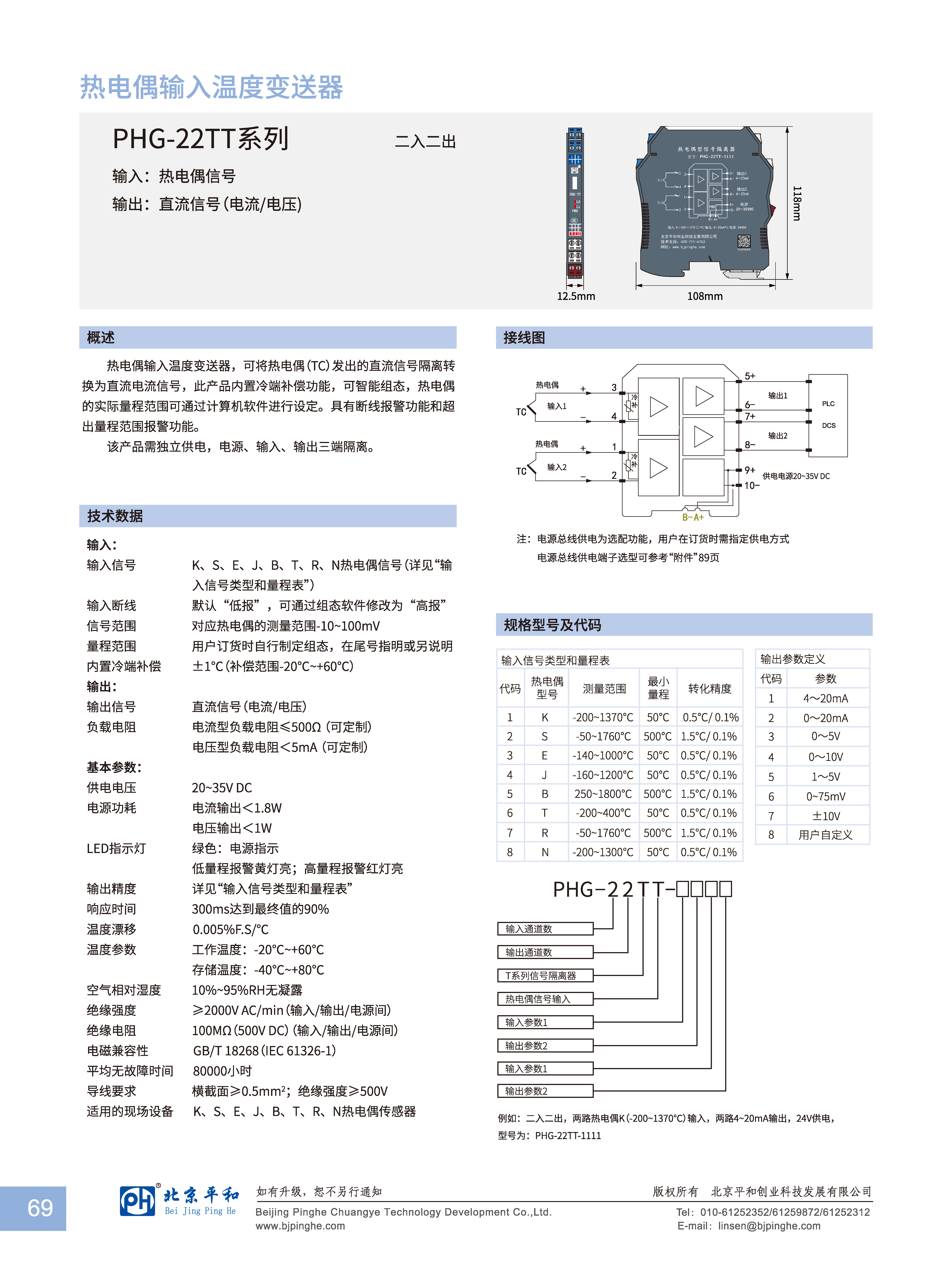 二入二出 熱電偶輸入 直流信號輸出