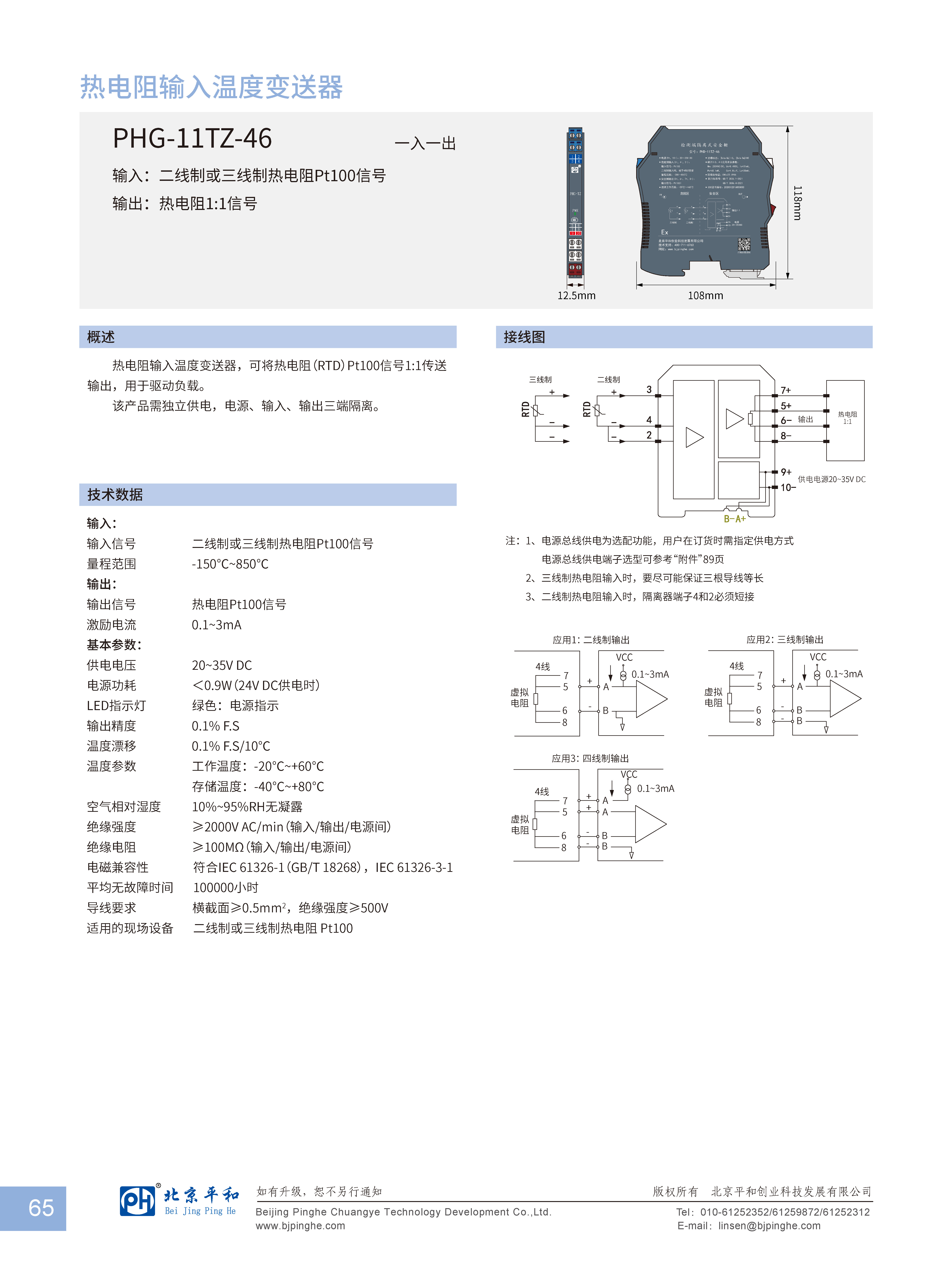 熱電阻輸入溫度變送器,可將熱電阻(RTD)Pt100信號(hào)1:1傳送送輸出,用于驅(qū)動(dòng)負(fù)載。