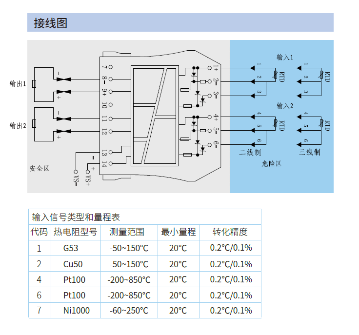 | 輸入信號(hào) | 二線或三線制熱電阻 |