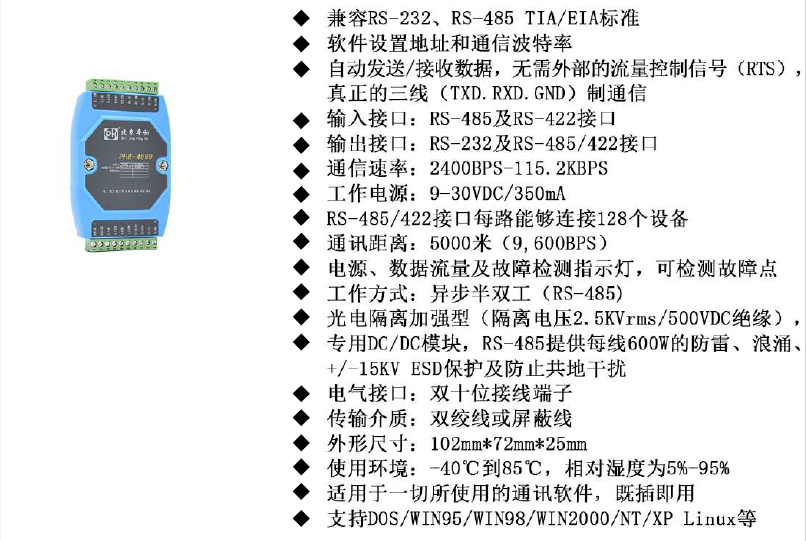 可編址RS-232/485/422轉(zhuǎn)RS-485/422