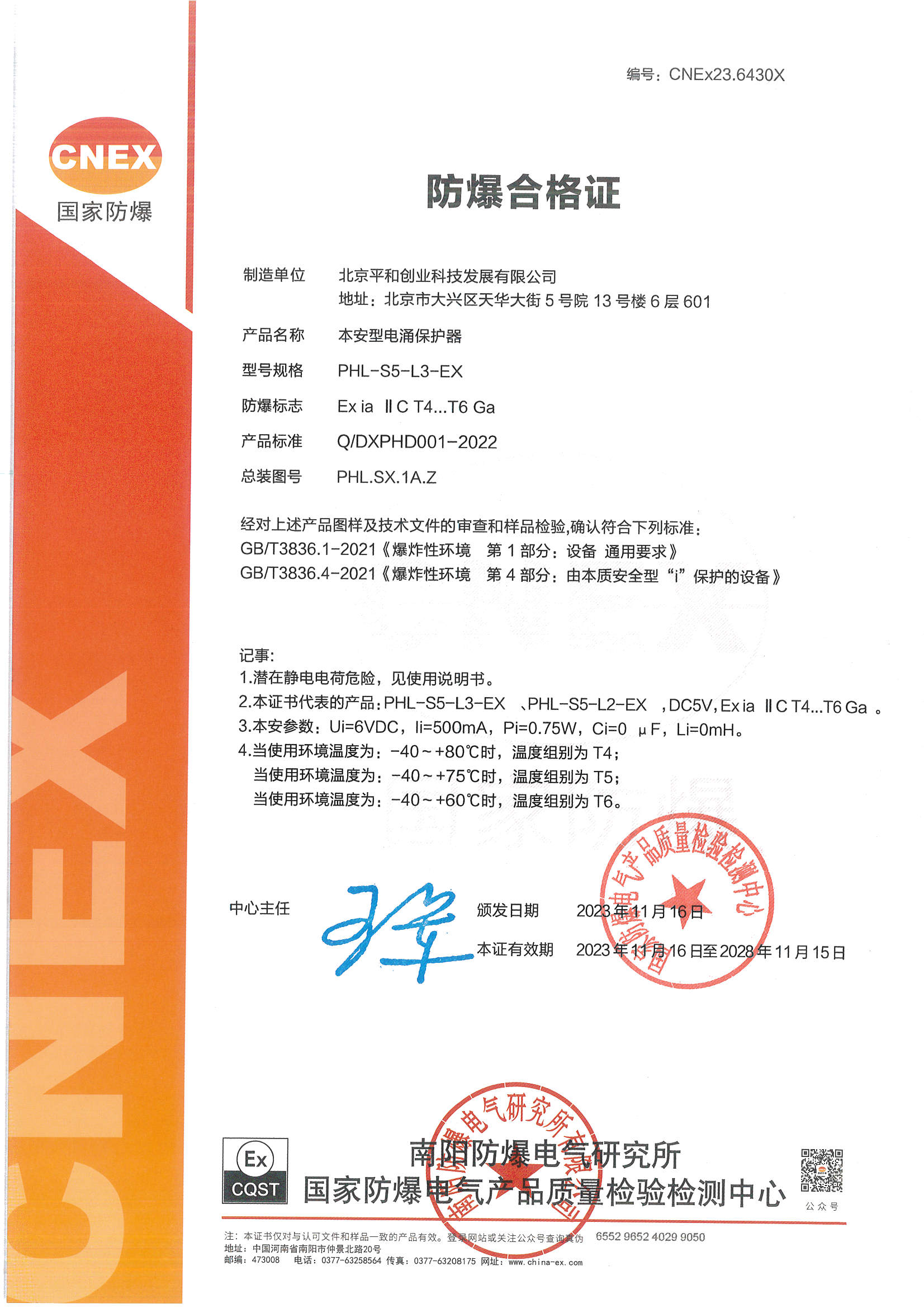 防爆認證 EXia IICT4-T6 Ga