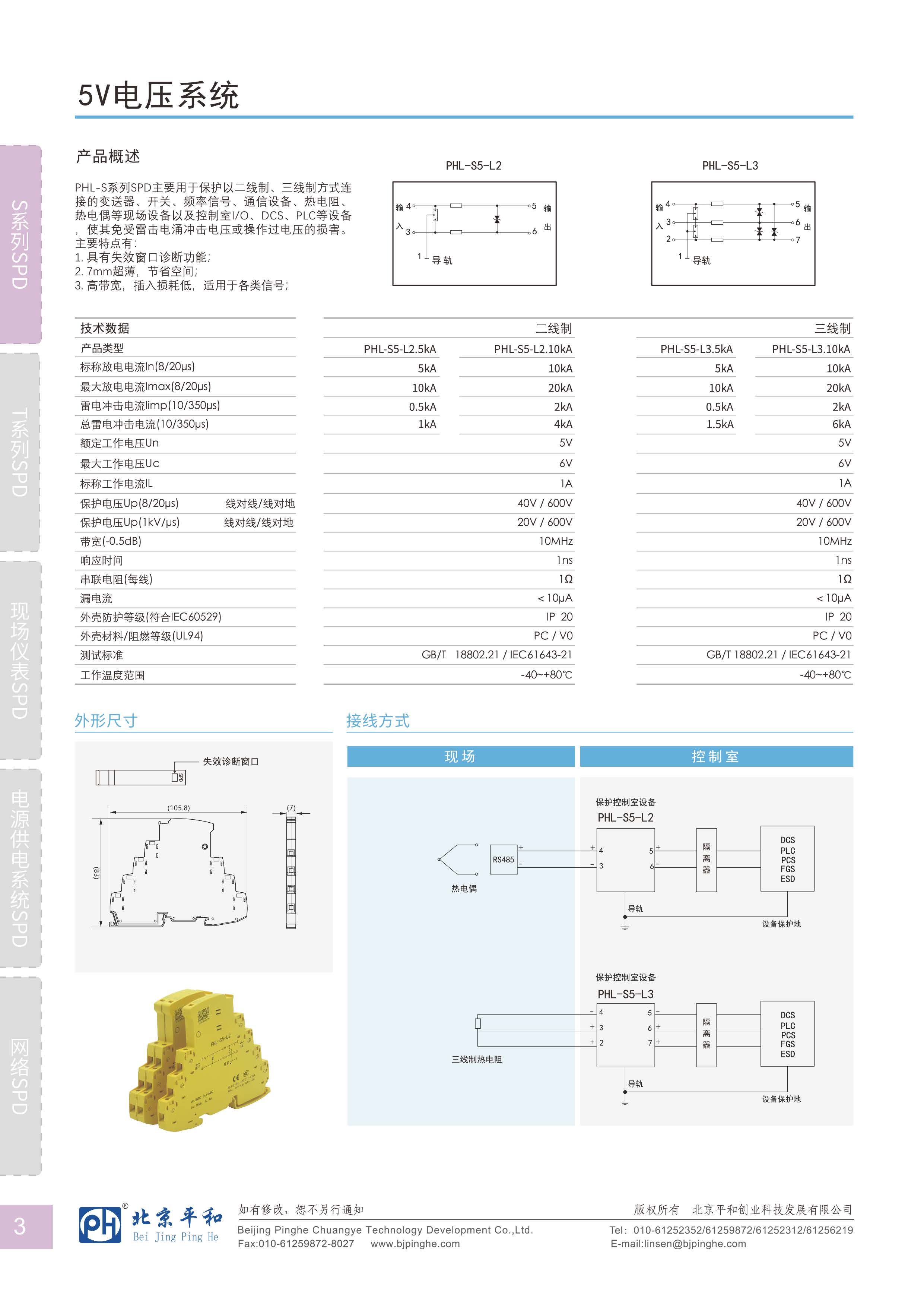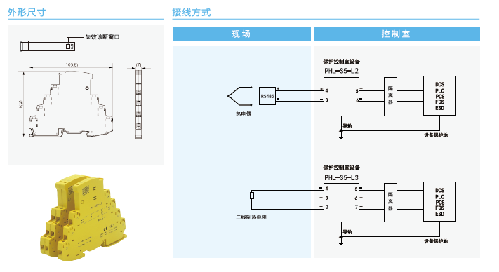 PHL-S系列SPD主要用于保護(hù)以二線制、三線制方式連接的變送茶、開關(guān),題率信號、通信設(shè)備、熱電阻、熱電偶等現(xiàn)場設(shè)備以及控制室IO.DCs、PLC等設(shè)備使其免受雷擊電涌沖擊電壓或操作過電壓的損害。主要特點有: