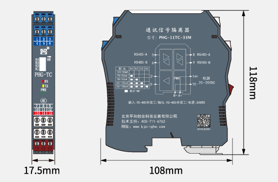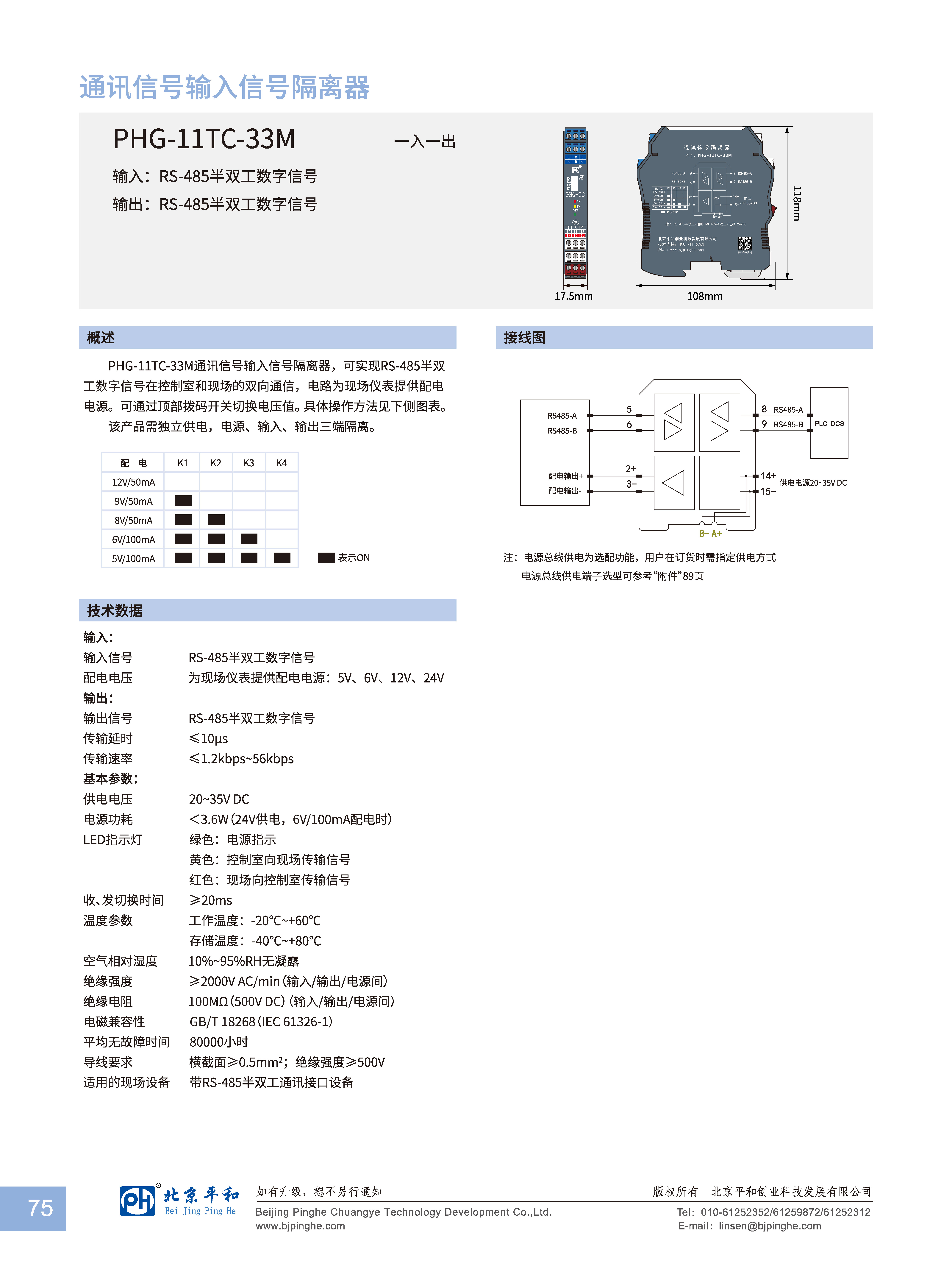 PHG-11TC-33M通訊信號輸入隔離式安全柵,可實現RS-485半雙工數字信號在控制室和現場的雙向通信。電路為現場儀表提供配電電源。可通過頂部撥碼開關切換電壓值。具體操作方法見下側圖表。