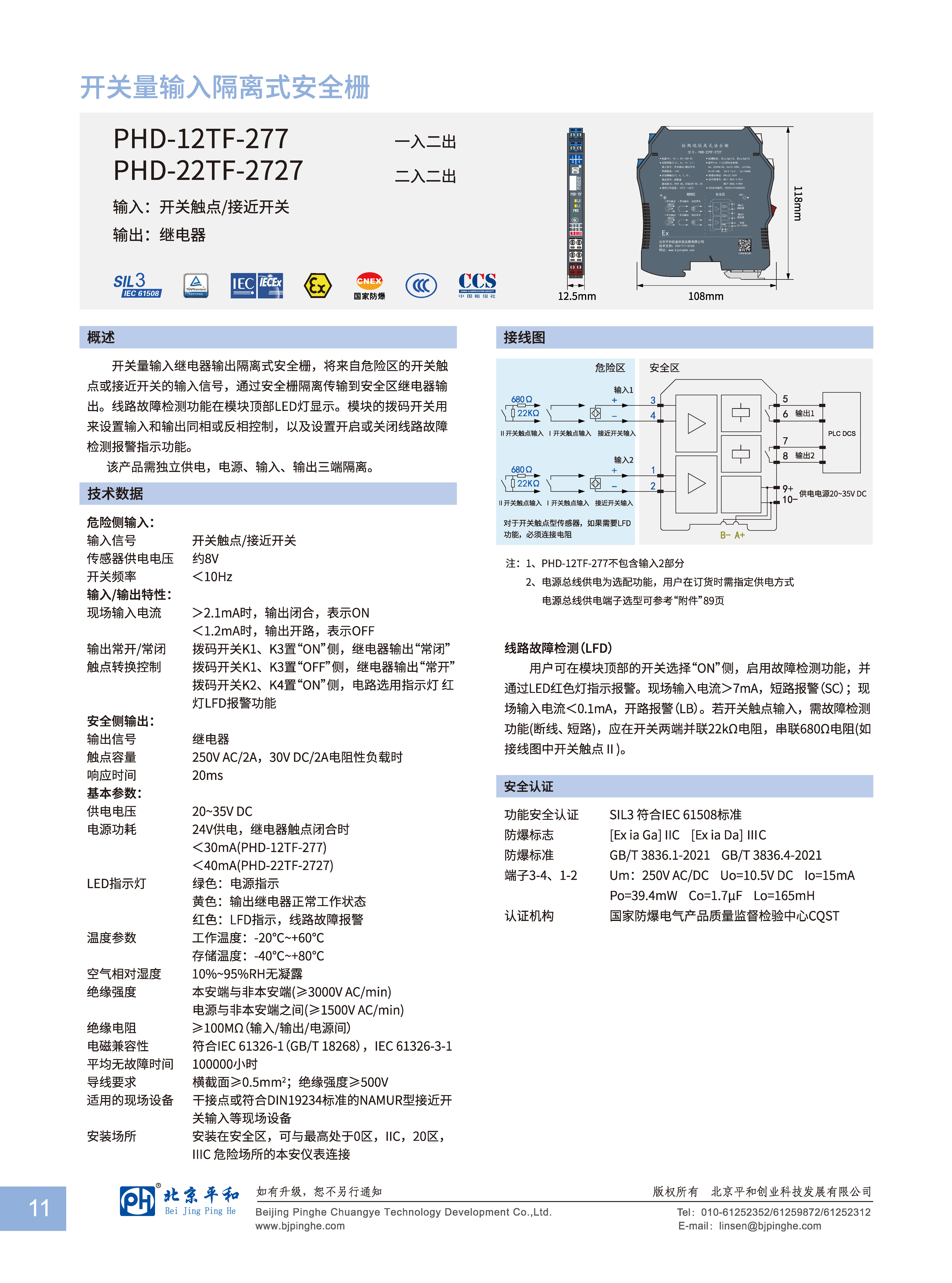 | 認(rèn)證參數(shù)(端子3-4, 1-2之間) | Um=250V AC/DC, Uo=10.5V DC, Io=15mA, Po=39.4mW, Co=1.7uF, Lo=165mH |