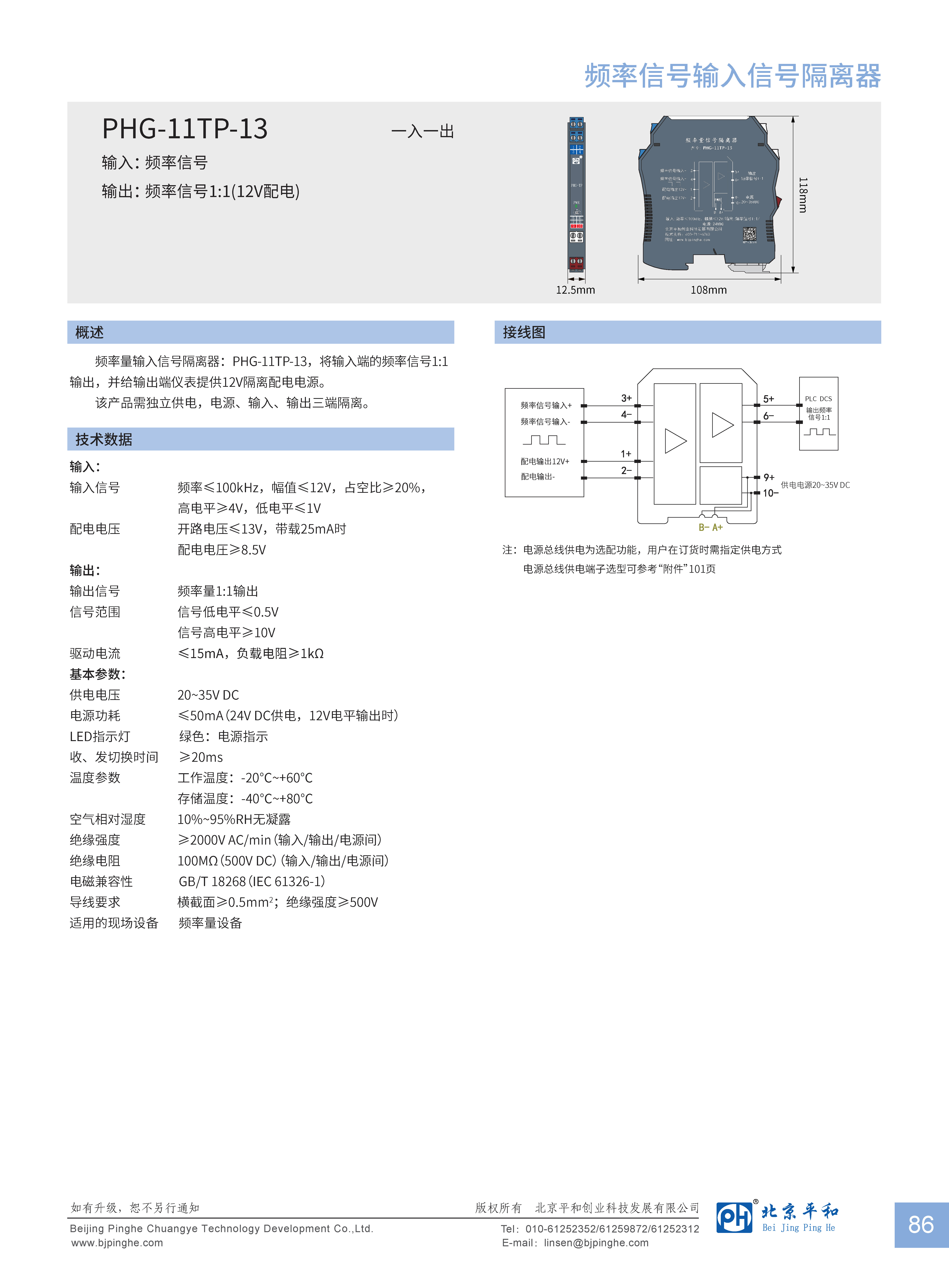 頻率量輸入信號(hào)隔離器:PHG-12TP系列,將輸入端的頻率信號(hào)根據(jù)用戶(hù)設(shè)定的量程線性轉(zhuǎn)換成直流信號(hào)輸出。
