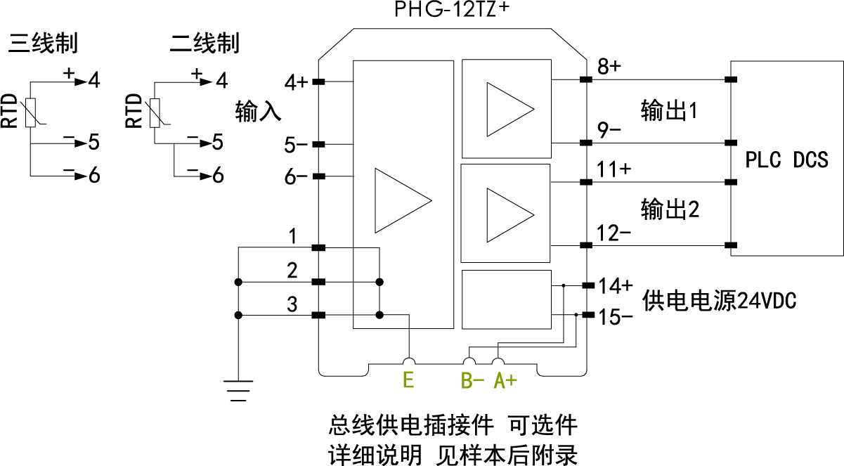 電涌保護型熱電阻輸入溫度變送器,可將二線制或三線制熱電阻(RTD)信號隔離轉(zhuǎn)換為直流信號,用于驅(qū)動負載??芍悄芙M態(tài),熱電阻的實際量程范圍可通過計算機軟件進行設(shè)定。具有斷線報警功能和超出量程范圍報警功能。