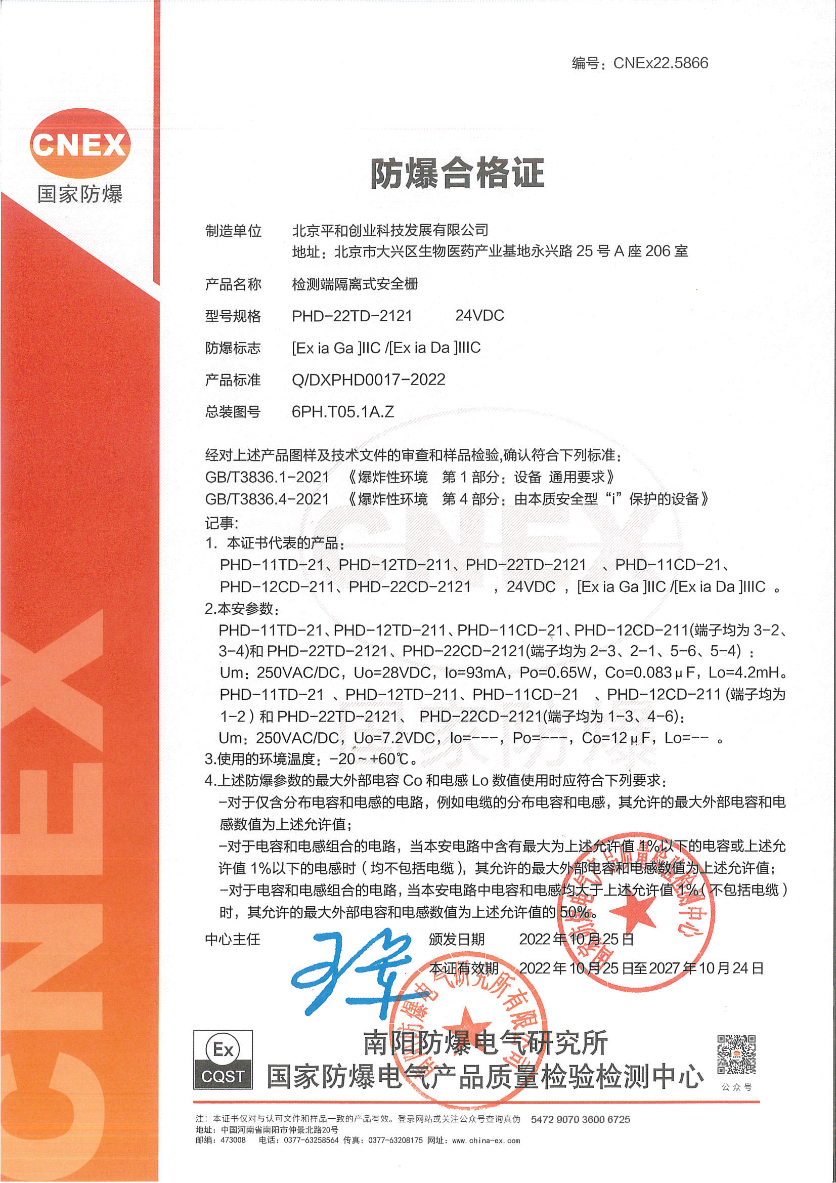 | 認(rèn)證機(jī)構(gòu) | 國(guó)家防爆電氣產(chǎn)品質(zhì)量檢驗(yàn)檢測(cè)中心CQST |