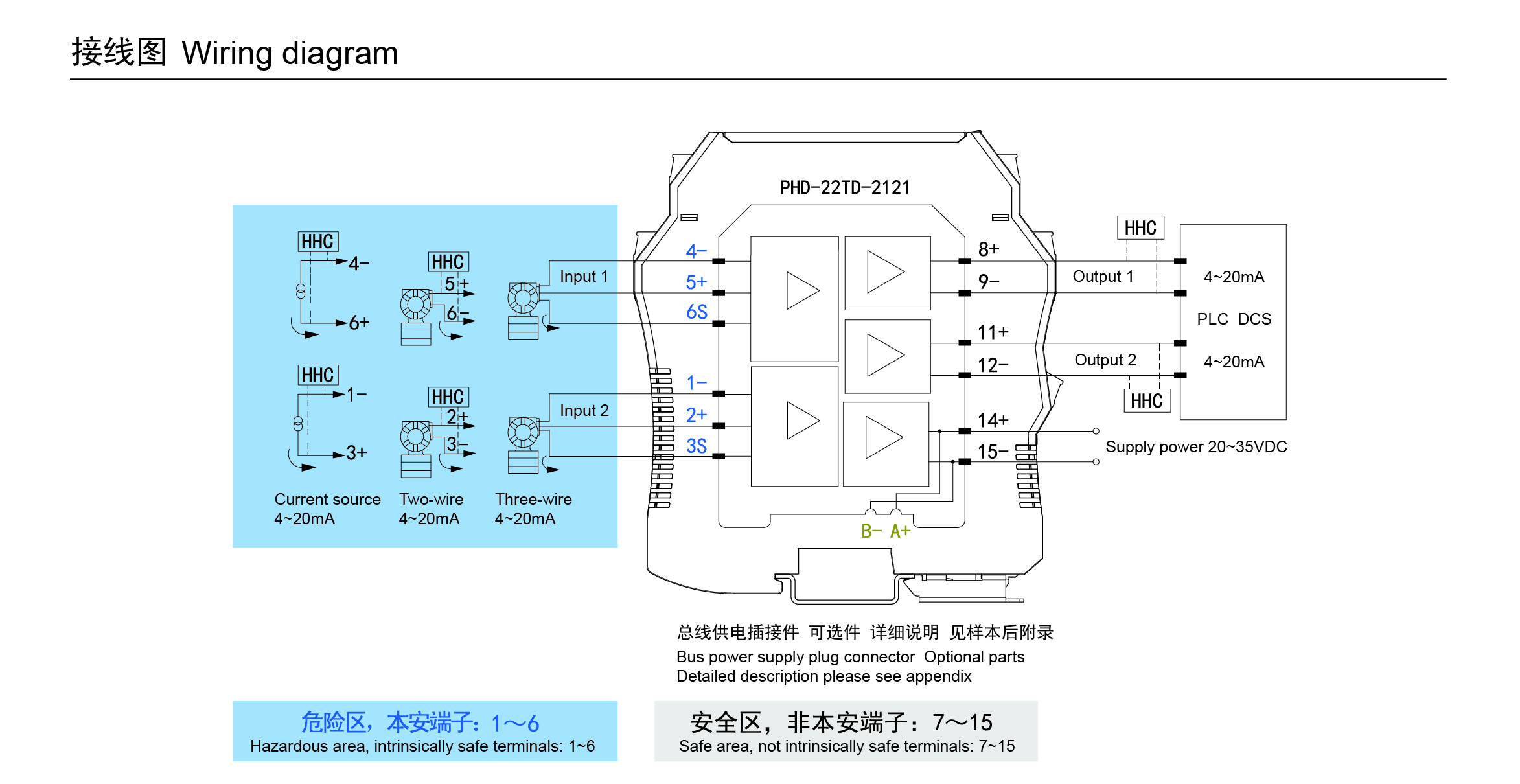 二、三線制變送器或電流源(HART)輸入