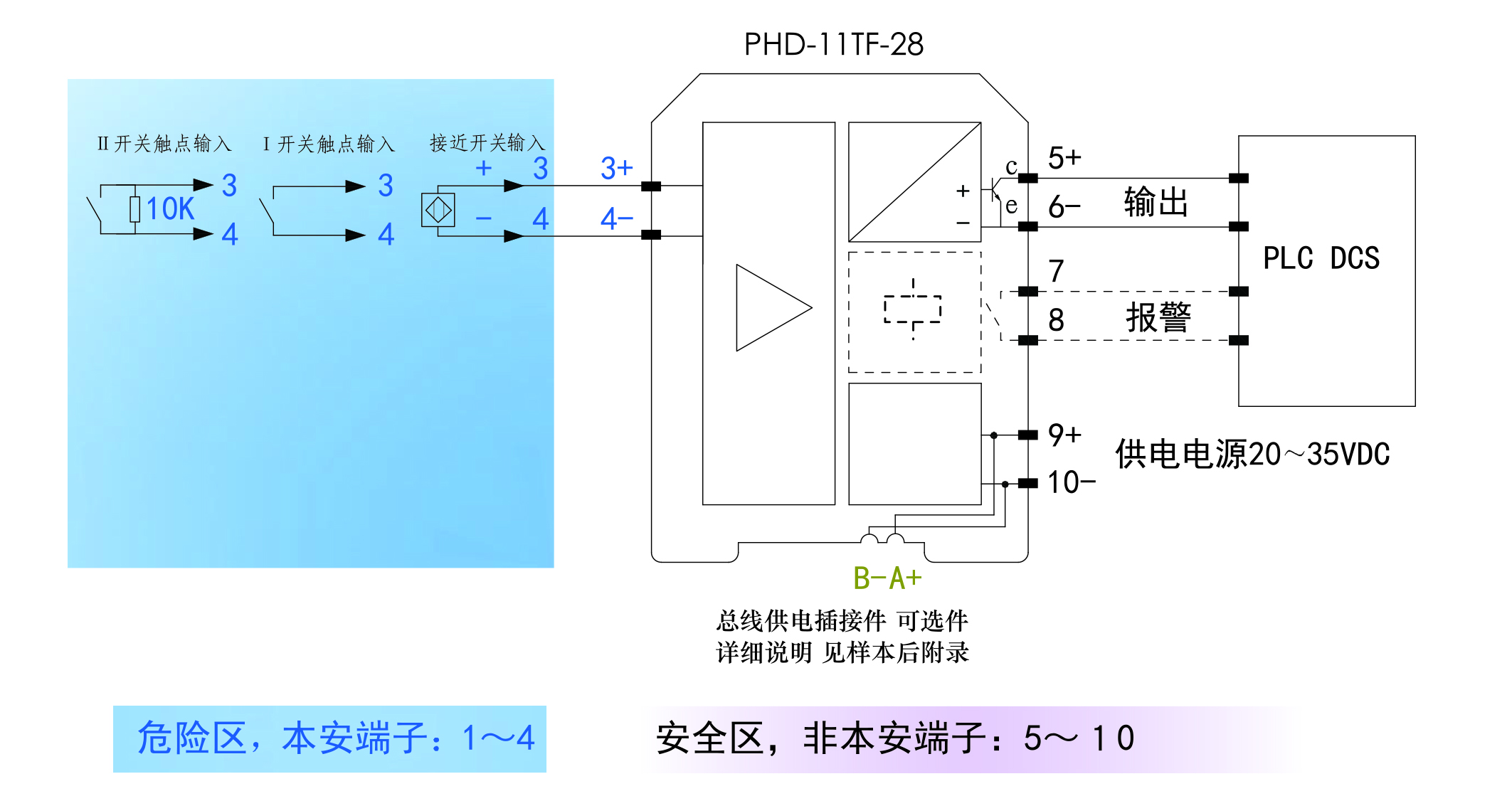 | 安裝場所 | 安裝在安全區(qū),可與高處于0區(qū), IIC, 20區(qū), IIIC 危險場所的本案儀表連接 |