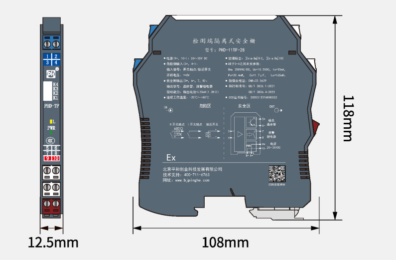 | 外形尺寸 | 厚12.5mm×寬108mm×高118mm |