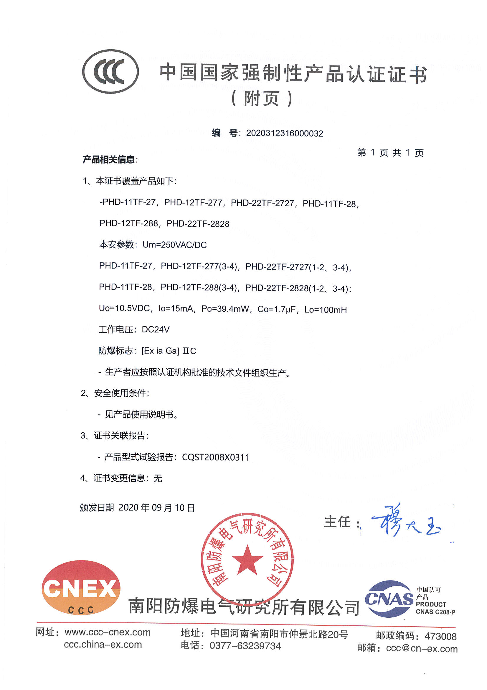 | 認(rèn)證機構(gòu) | 國家防爆電氣產(chǎn)品質(zhì)量監(jiān)督檢驗中心CQST認(rèn)證 |