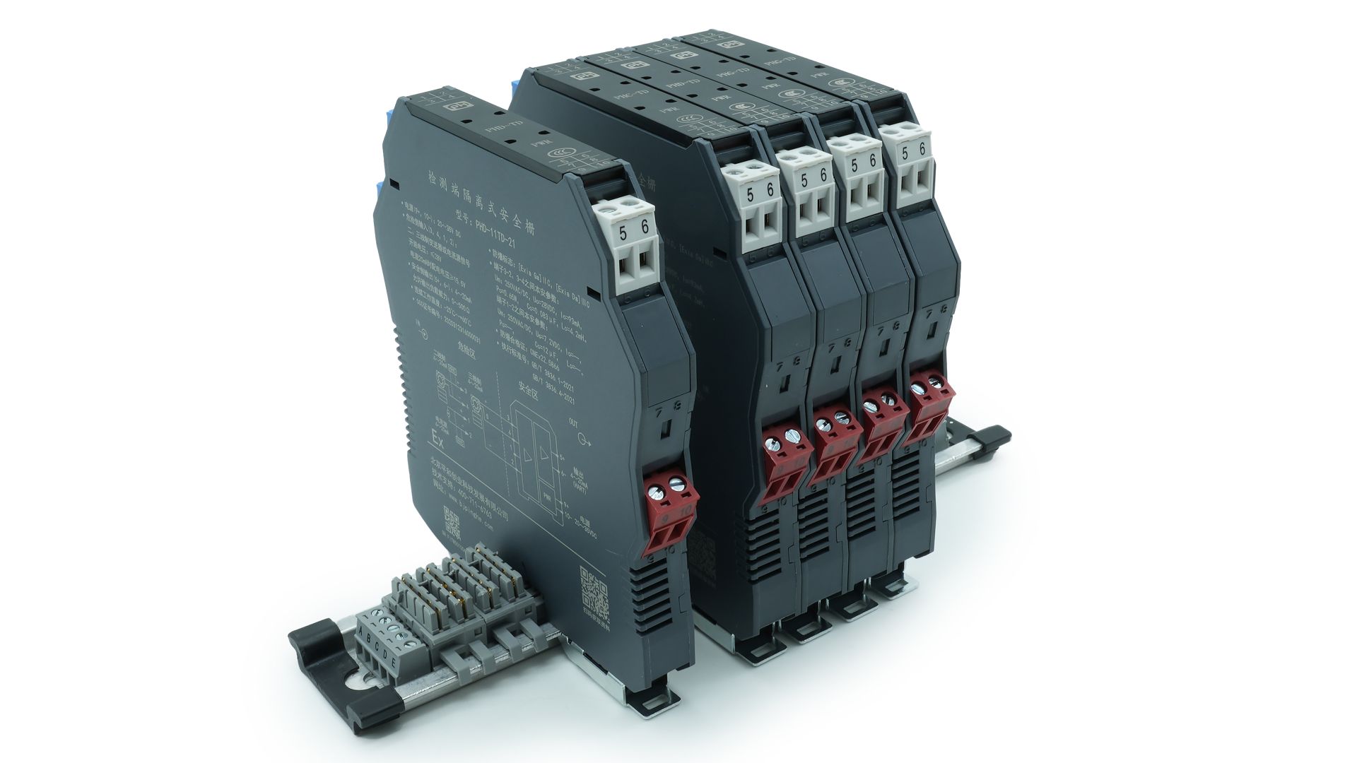 開關量輸出隔離式安全柵,通過安全區(qū)的觸點開關、邏輯電平信號控制,驅動危險區(qū)的現(xiàn)場本安設備。從而控制電磁閥、聲光報警器等。信號狀態(tài)指示燈設紅黃雙色,報警顯示紅色,輸出電磁閥等工作顯示黃色。