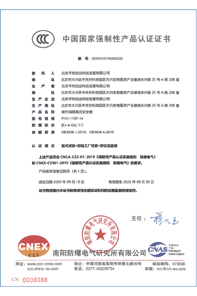 | 認證機構 | 國家防爆電氣產品質量檢驗檢測中心CQST |
