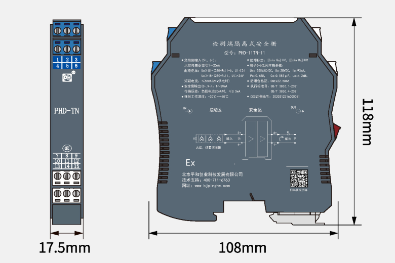 外形尺寸 厚17.5mm×寬108mm×高118mm