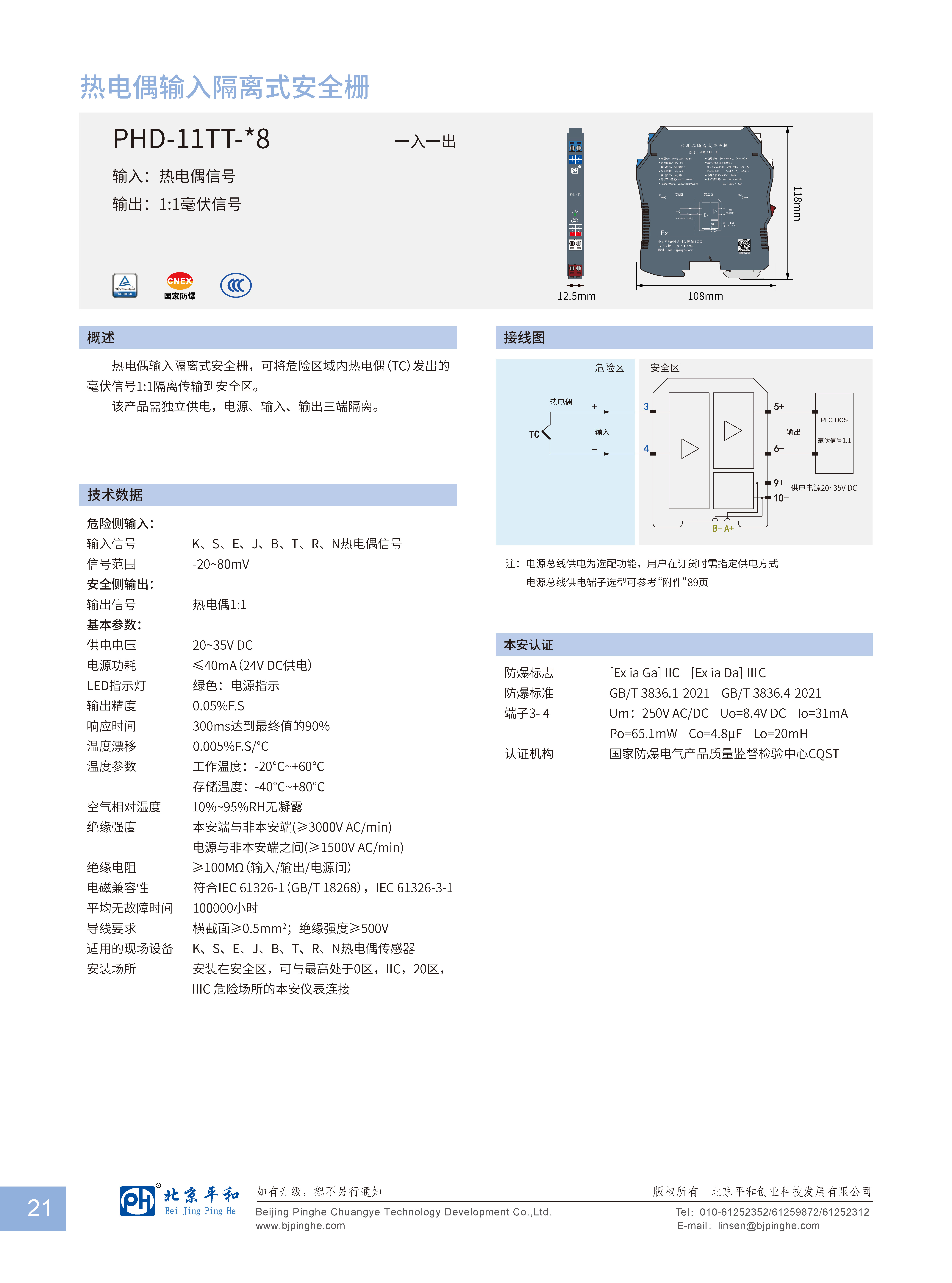 熱電偶輸入隔離式安全柵,可將危險(xiǎn)區(qū)域內(nèi)熱電偶(TC)發(fā)出的毫伏信號1:1隔離傳輸?shù)桨踩珔^(qū)。