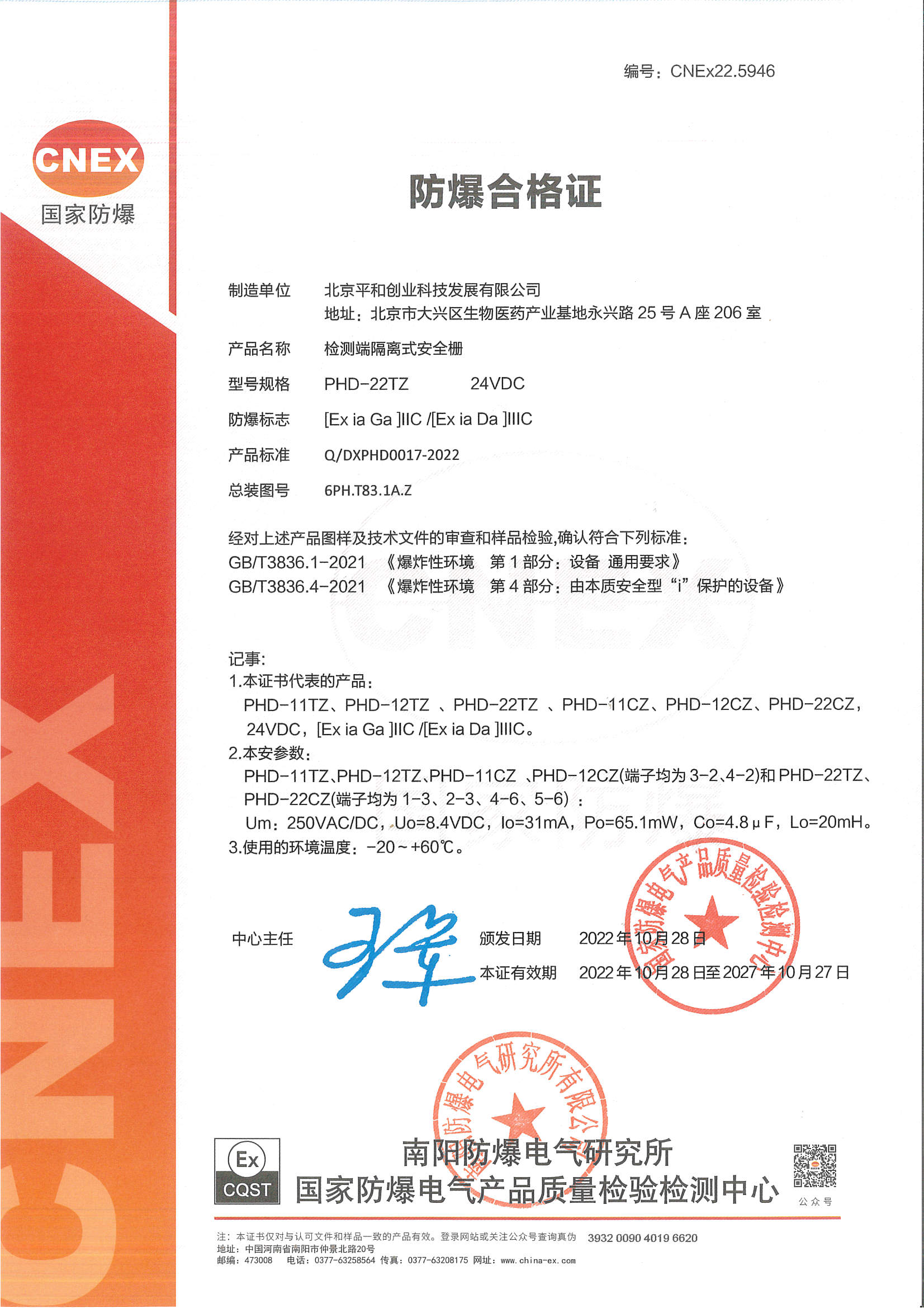 | 認(rèn)證機(jī)構(gòu) | 國家防爆電氣產(chǎn)品質(zhì)量檢驗(yàn)檢測中心CQST |