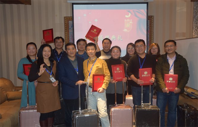 首先,公司董事長(zhǎng)致開(kāi)幕賀詞。董事長(zhǎng)對(duì)2017年實(shí)現(xiàn)產(chǎn)銷量的飛躍式增長(zhǎng)表示肯定的同時(shí),鼓勵(lì)大家戒驕戒躁,爭(zhēng)取更大的成績(jī)并宣布2018年是“服務(wù)提升年”。隨后,公司領(lǐng)導(dǎo)為獲獎(jiǎng)員工和集體頒獎(jiǎng)。