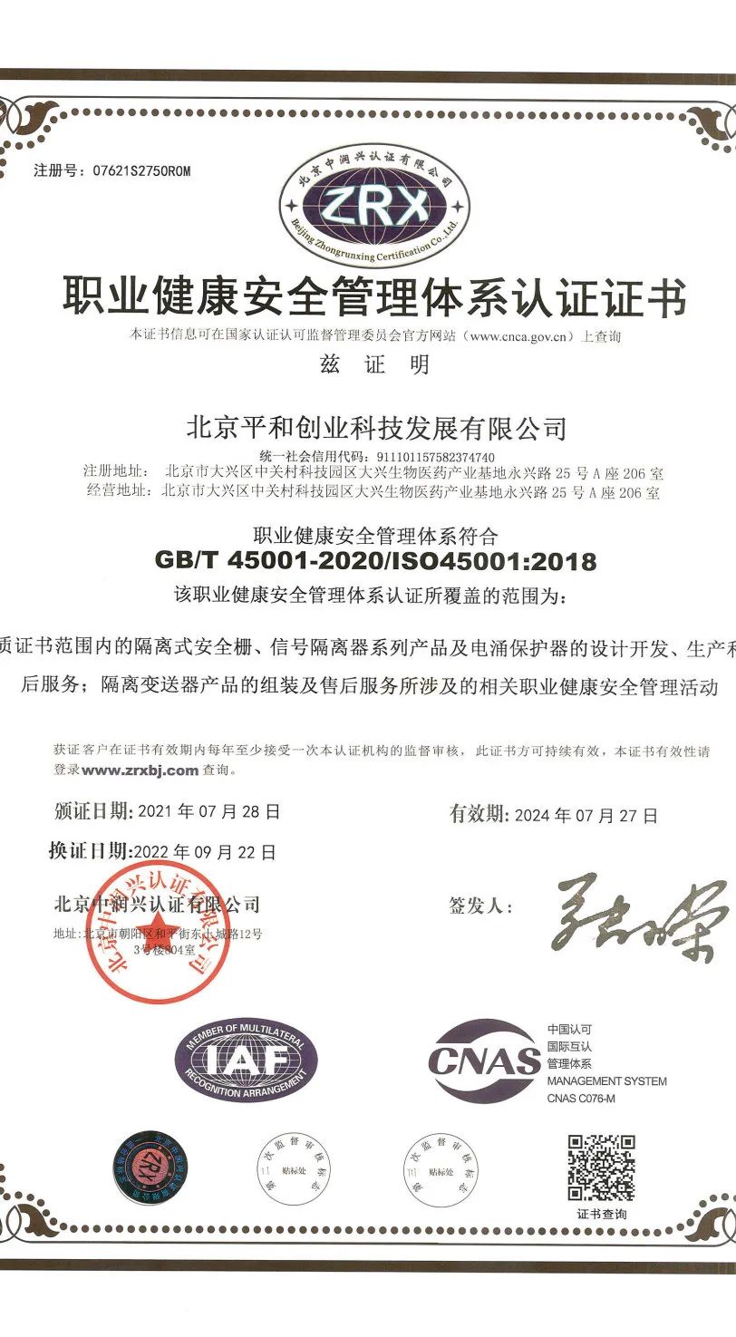 全面高等級的體系認(rèn)證是確保產(chǎn)品高質(zhì)量、企業(yè)穩(wěn)定運行的前提。北京平和專注高端工業(yè)信號接口模塊,高度重視企業(yè)內(nèi)在管理和外在市場行為,不斷優(yōu)化企業(yè)結(jié)構(gòu),竭力提高企業(yè)管理水平和綜合實力,不斷為中國工控產(chǎn)品引領(lǐng)世界而努力奮斗,力爭將北京平和打造成全球工控行業(yè)知名品牌!